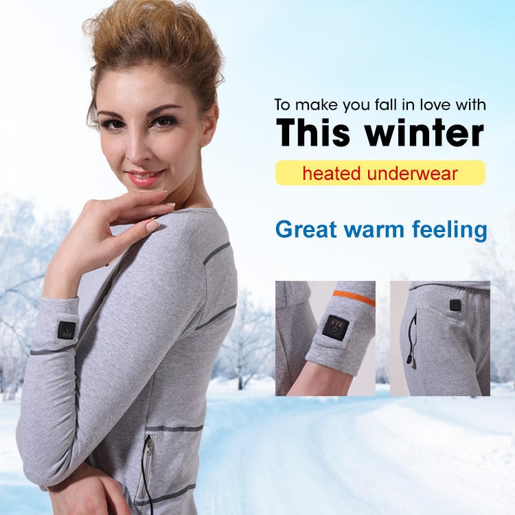 Women Soft Breathable Seamless Rechargeable Battery Keep Warm Winter Warm Thermal Heated Underwear Clothing